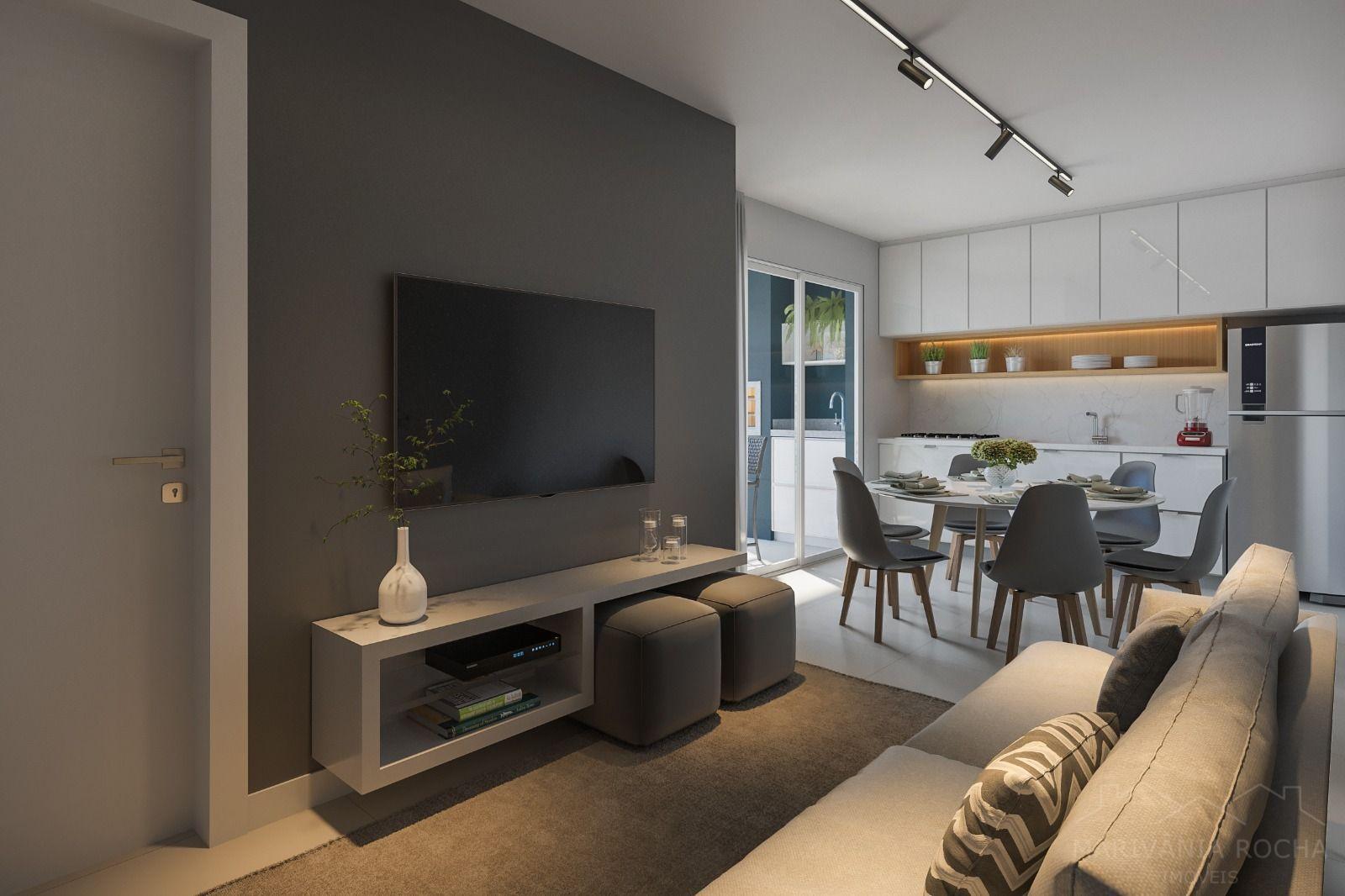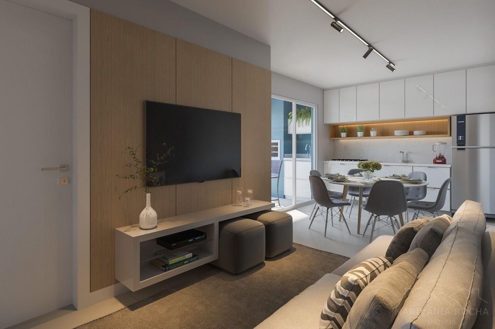 - Sala de estar e cozinha integrados;