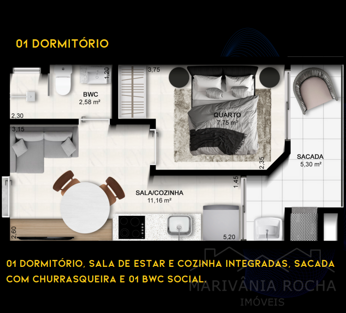 ➡️ 47 unidades com 01, 02 e 03 dormitórios;