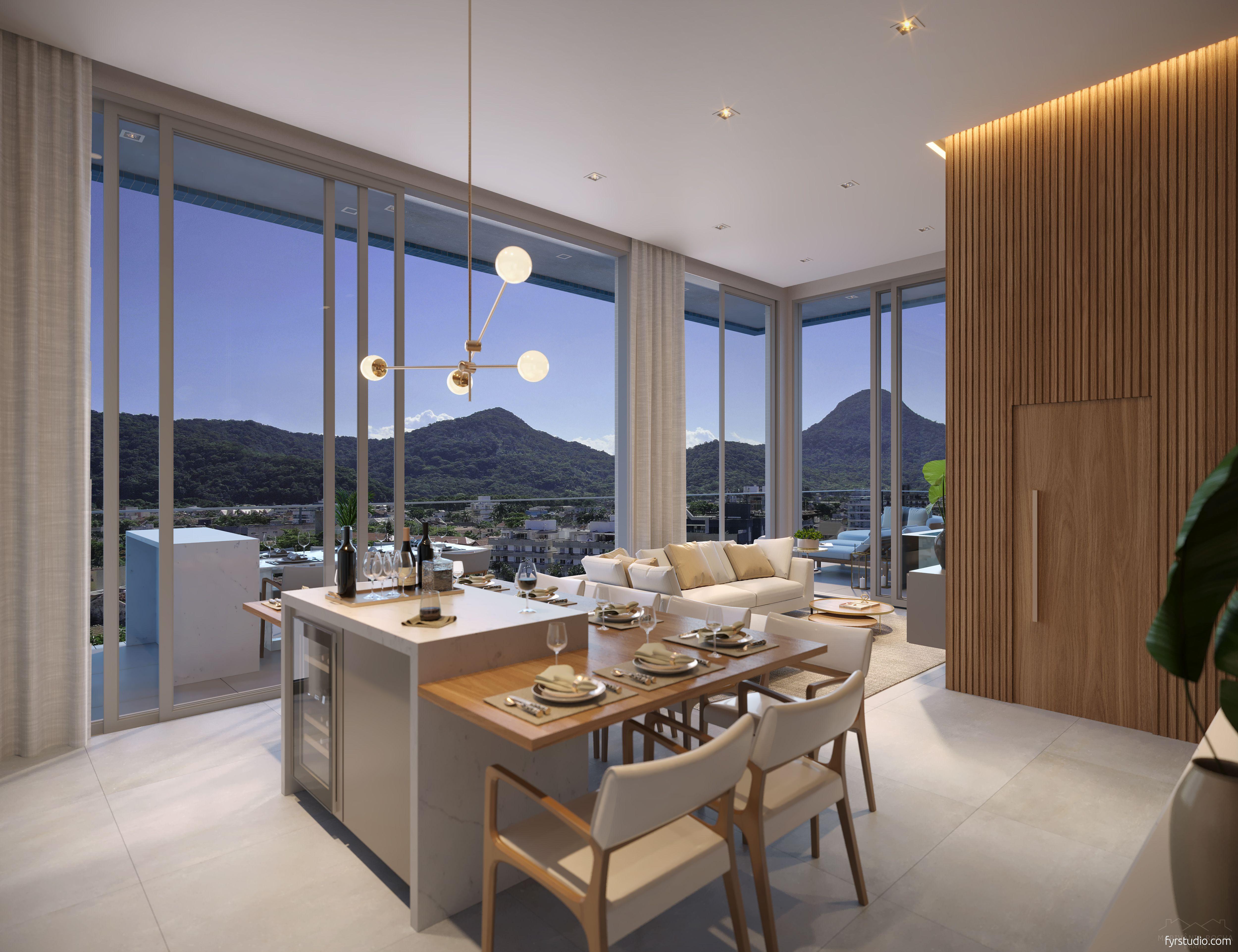O empreendimento oferece design moderno, fachada com pastilhas, sacadas com vidro, armários individuais nas garagens e cozinha gourmet integrada.
