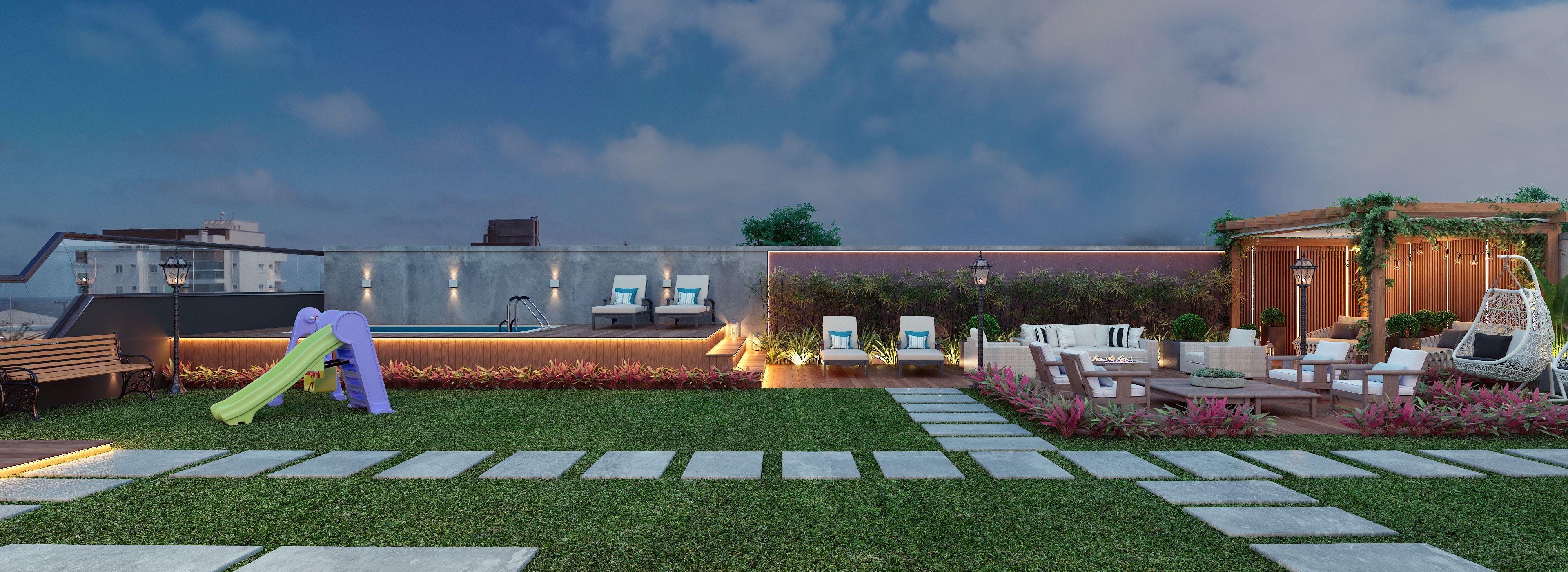 Área de Lazer Completa com salão de festas, espaço kids, espaço game, espaço fitness, quiosques e uma piscina com borda infinita.